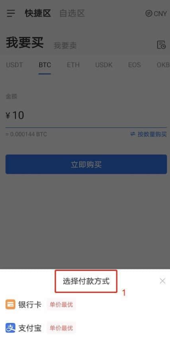 如果想要最快的方式交易的话,大家可以选择快捷买币的方式,快捷买币就是支持按金额/数量购买数字货币,系统为用户自动匹配最优的支付方式,点击购买即可进入法币交易,简单明了。一起来看看: