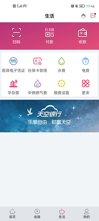 转账缴费:行内转账、跨行转账、预约转账,支持在线缴纳水费、电信费等。
