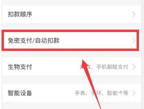 进入后选择免密支付,自动扣费选项。