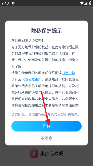 1、首先打开软件,阅读并同意《用户协议》及《隐私政策》;