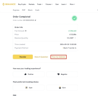 5.验证成功后,卖方会将加密货币放行给您,交易即视为完成。您可以点击[查看我的余额]查看资产。