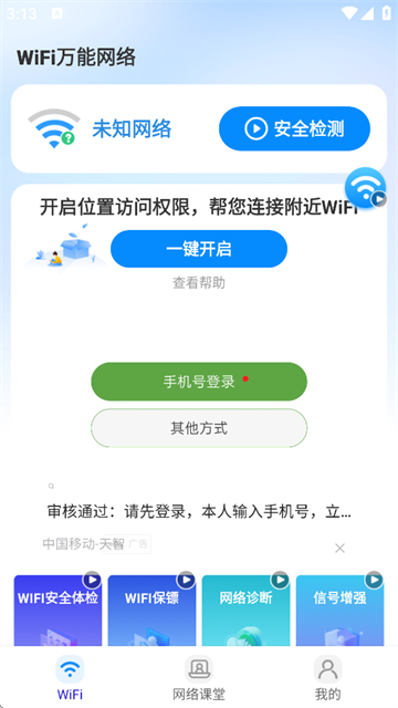 wifi万能网络下载是一款通过共享密码库实现一键连接WiFi的工具,其核心功能是简化公共网络接入流程。用户安装后,可自动匹配已共享密码的热点,无需手动输入,该应用覆盖餐饮、交通枢纽等场景,用户连接WiFi时,密码可能被上传至云端数据库,供其他用户调用