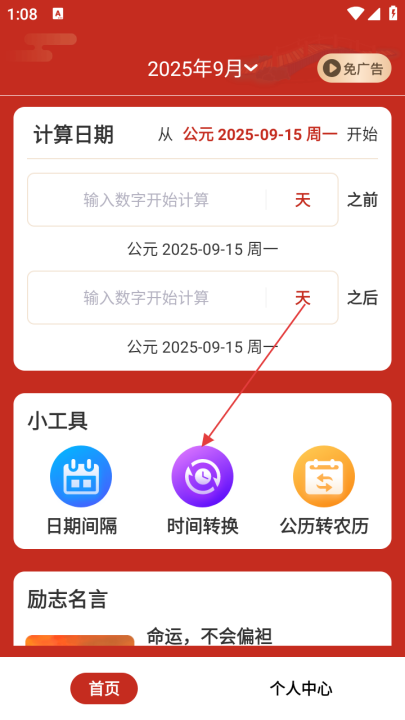 2、进入首页后,找到【小工具】板块,点击其中的【时间转换】图标。