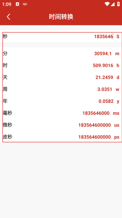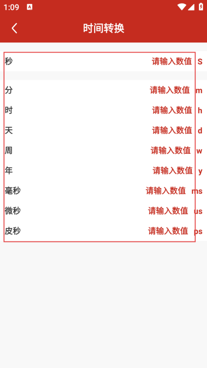 3、在【时间转换】页面,在对应时间单位(如秒)的输入框中填写数值。