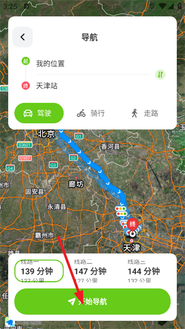 3、搜索并点击查询后,点击开始导航就可以出发了。
