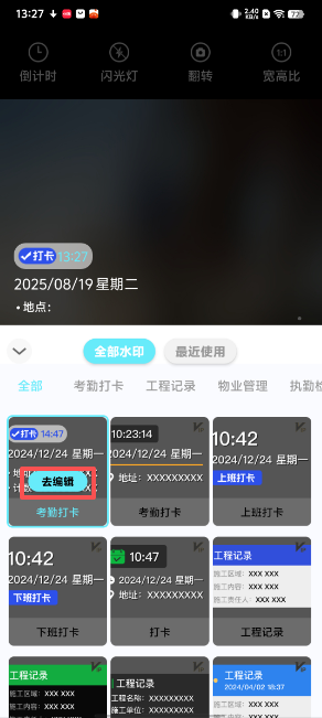 软件中可以支持用户自定义编辑水印内容,展示时间、地点、天气等信息;