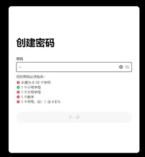 6.创建密码需要符合长度为 8-32 个字符、1 个小写字母、1 个大写字母、1 个数字、1 个符号,如:!@ # $ %等条件
