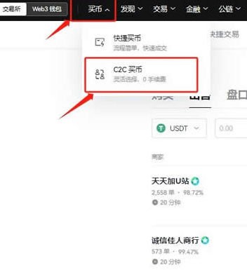 打开C2C交易模块:在欧意APP或网页版中,找到并点击“C2C交易”的入口。