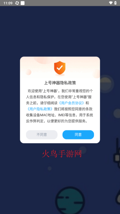 1、在本站下载上号神器app后打开软件,点击同意协议;