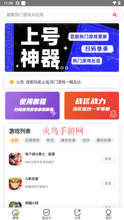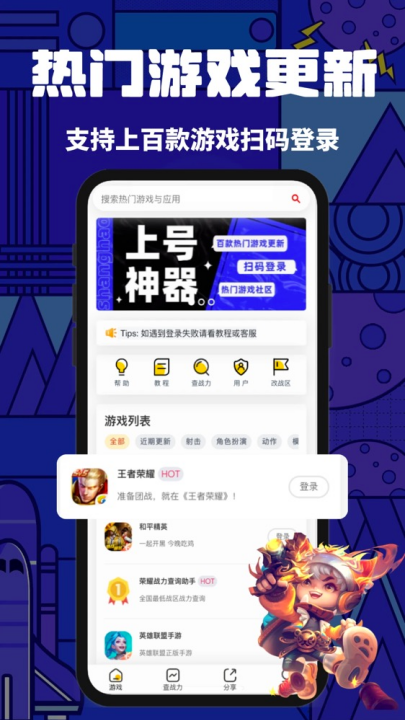 上号神器app是手游扫码登录的官方APP,集合了游戏攻略、动态、社区、战力查询、游戏工具等全方位的功能!