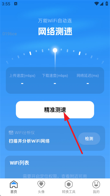 2、进入首页后,点击“精准测速”按钮开始测速;