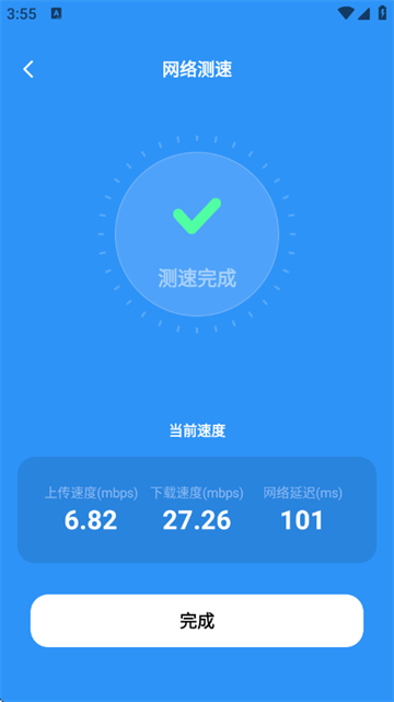 3、测速完成后,下方可以看到当前网络的上传速度、下载速度以及网络延迟。