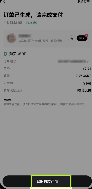 三、确定“购买详情预览”-点击“获取付款详情”-按照“商家要求的支付方式”进行转账-根据“页面展示的金额”进行付款-付款成功后点击“我已支付”-确认已转账-等待商家收到款放币即可;