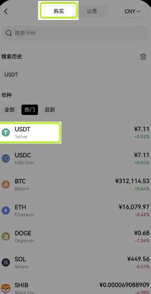 一、打开欧易首页-点击C2C买币-快捷买币-点击购买-选择需要购买的数字资产