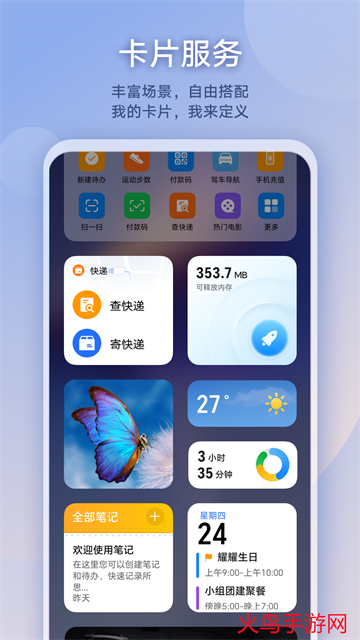 您也可以根据自己的使用习惯,增加、删除服务卡片,调整卡片布局等。