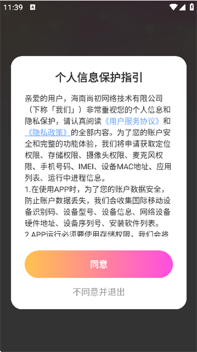 2、首先请同意用户协议和隐私政策;