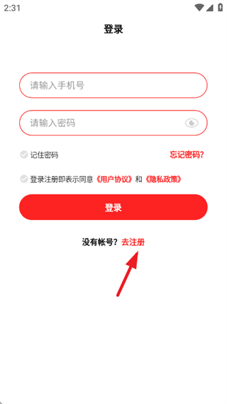 2、有账号的朋友输入手机号和密码就可以了,没有账号的朋友,点击下方的“去注册”按钮;