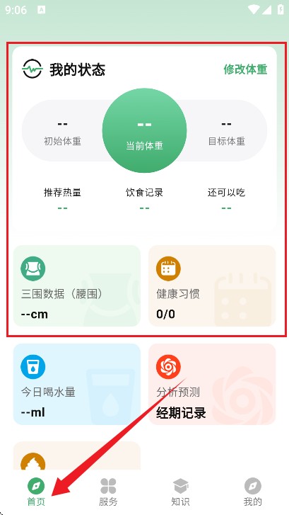 2、进入到人人轻断食首页后,如图所示。用户首先可以输入并设置好自己的身体数据和健康状态。然后人人轻断食app就能为你计算出科学的饮食热量。