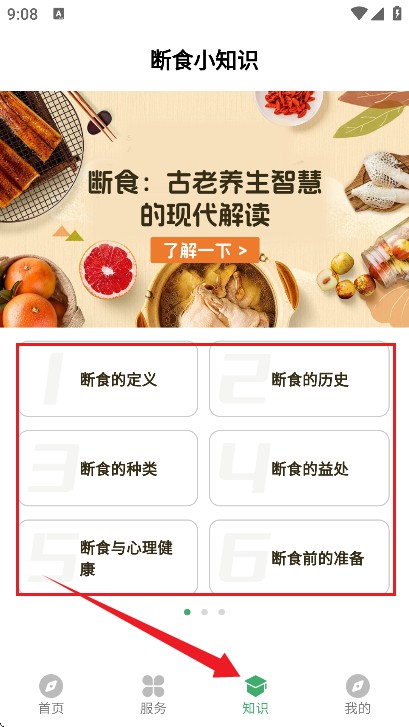 4、其次在软件的【知识】界面中还能为大家提供丰富的断食小知识。