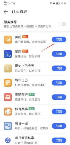 在弹出的对话框中选择黄历“订阅”,再退出日历。
