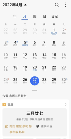 3、软件会根据个人喜好自定义是否显示农历、节假日、节气等信息。