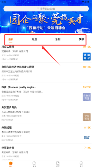 3、使用顶端搜索框输入企业或职位名称,可精确检索招聘资讯。