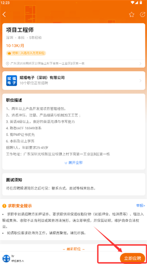 2、选择意向岗位浏览详细内容,点击按钮即可提交个人简历。