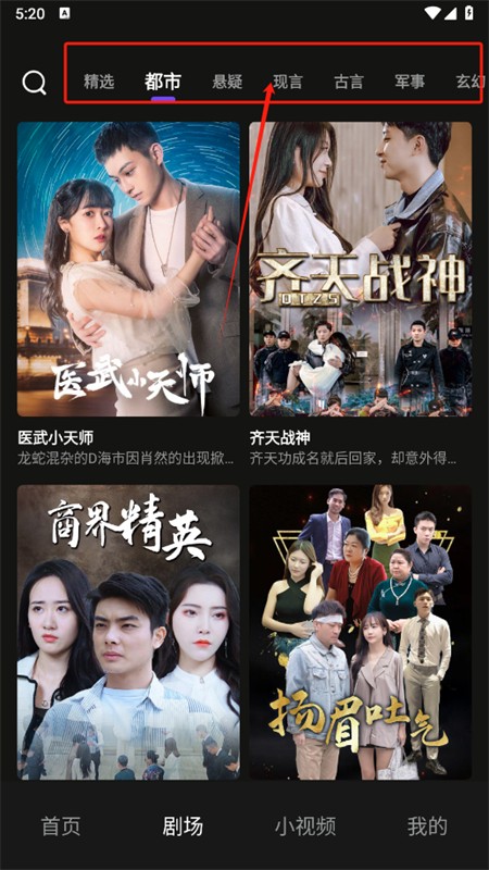 3、还可以在剧场页面,根据短剧分类来选择想看的内容