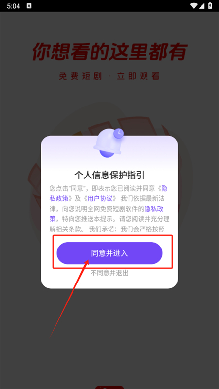 1、在本站下载安装全网免费短剧app,同意隐私政策和用户协议