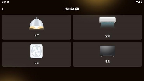 2、添加设备类型涵盖了吊灯、空调、风扇和电视,结合你的使用需求确定。