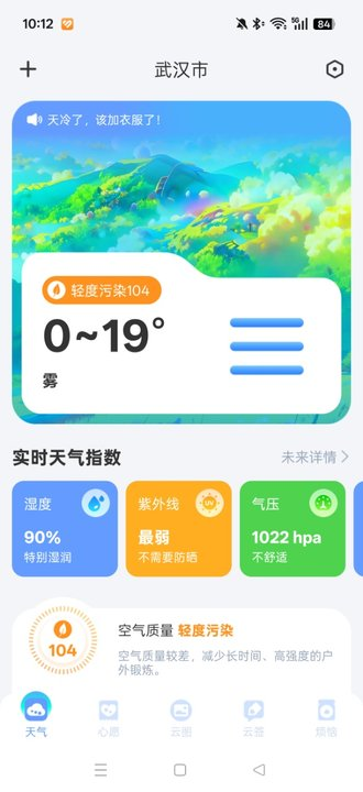 识云天气app是一款专注于天气查询服务的软件,用户可以随时在软件中查询未来24小时的天气预报信息,还将实时天气指数可视化全面展示,让用户可以轻松掌握实时的天气指数信息,将实时天气指数信息全面了解,对天气预报信息的查询可以让用户的日常出行更方便,避免用户出行受到恶劣天气的影响,还可以对当前城市的空气质量进行查询查看,了解未来5天内的空气质量情况,让用户查天气、查空气质量都非常的便捷简单,还支持用户通过添加云签的方式,将自己每天的心情状态以图文并茂的形式记录下来,有需要的用户就快来下载识云天气官网版使用吧!