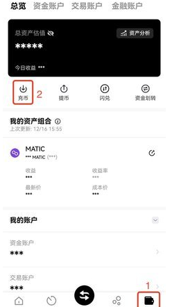 选择【资产】【充币】