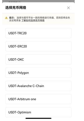 在选择充币网络时,确保其他平台或钱包的【提币/提现网络】与欧易钱包的充值网络保持一致,例如都为USDT-ERC20,否则资产可能会丢失。
