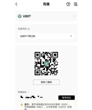 选择充币网络【USDT-ERC20/USDT-TRC20/USDT-OKC】【复制地址】。