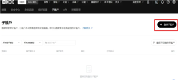 进入到子帐户页面后,点击右侧红色框起来「+创建子帐户」的按钮。