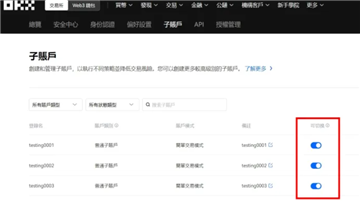 顺道一提,此页面就是你在 OKX 交易所管理子帐户的后台,未来你在管理子帐户时都可以从这个页面设定。