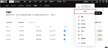 未来在操作各个子帐户时,即可直接从首页右上角处切换需使用的子帐户。
