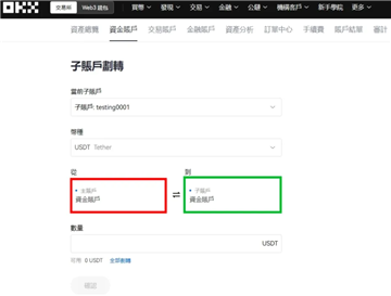 在确认以上的设定都调整好后你就可以开始着手将主帐户的资金转入子帐户中。