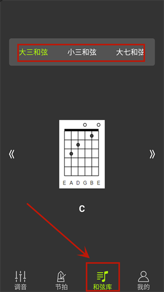 在调音界面可以切换不同的乐器,点击不同的和弦即可开始调试。