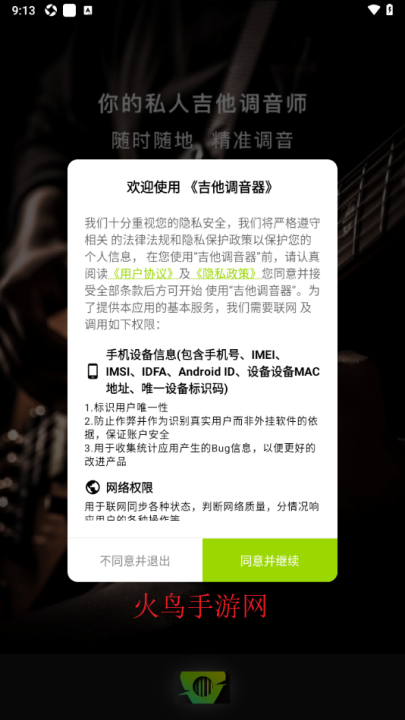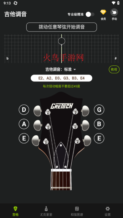 吉他调音器Tuner软件v1.0.1 最新版吉他调音器Tuner软件是一款很不错的手机工具,这款软件主要是用于一些乐器的调音,不同的音可以弹奏不同的乐曲,所以调音是很有必要的,但是随身带一个调音器很麻烦,那就来火鸟手游网下载一款好用的调音软件,只需要点击记下就可以轻松调音。