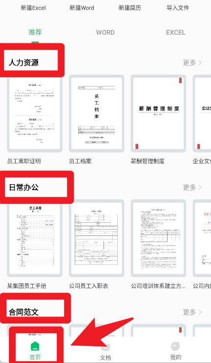 3、首页还提供人力资源、日常办公、合同范文等分类模板,方便用户直接套用,提升工作效率。