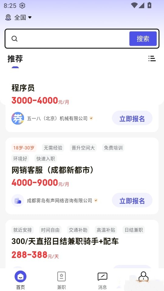 兼客兼职软件(兼客兼职-求职赚钱平台)v4.2.2.0 最新版兼客兼职软件(兼客兼职-求职赚钱平台)是一款工作类兼职平台,此款软件专为有兼职需求的用户打造。软件内大家可以查看附近的各种兼职信息,还可以根据自己的情况进行筛选,轻松找到适合自己的兼职岗位。对兼客兼职软件感兴趣的用户不要错过,欢迎大家在本站下载使用。