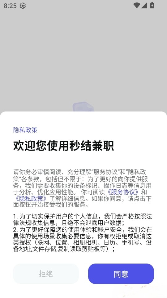 1、首先打开软件阅读完隐私政策后,点击“同意”按钮进入APP