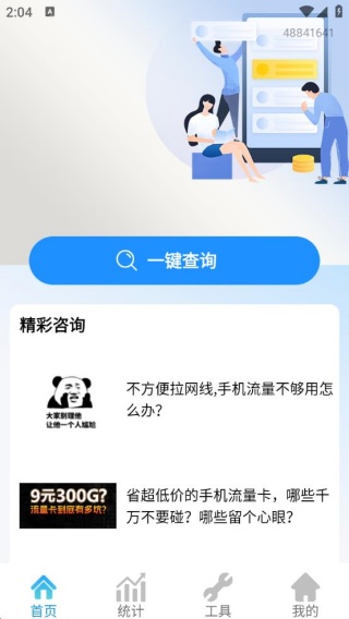 1、打开应用就可以让你一键查询需要的流量话费,轻松管理。