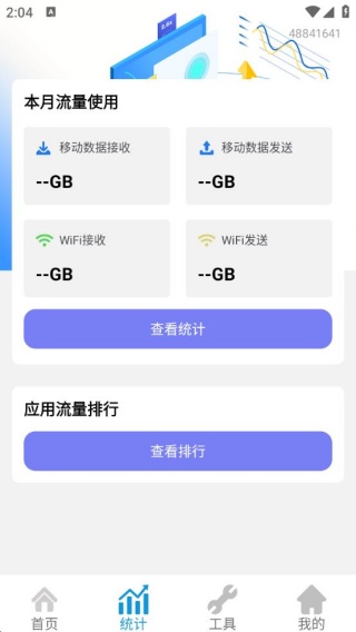3、进入到统计界面,可以去查看本月流量使用,还有应用流量排行去了解。