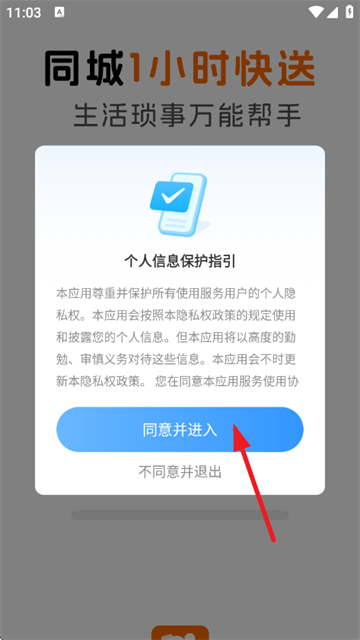 1、首先打开软件,阅读完《个人信息保护指引》点击同意并进入;