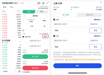 Gate.io合约交易页面提交委托内可以在下单时对当前订单设置止盈止损。委托内的止盈止损功能进一步结合限价单和市价单机制,帮助用户更灵活地管理交易。