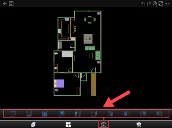 3、底部搭载视角切换栏,多组视角图标覆盖平面、立体等观察模式,用户一键切换即可重塑图纸查看视角,全方位解析建筑、机械等设计架构的空间逻辑。
