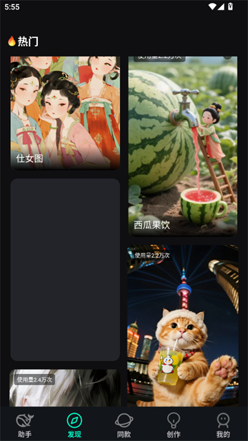 5、进入同款页面,可以浏览各种绘画和视频作品,直接一键使用同款可以快速创作