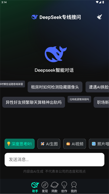 4、在助手页面,可以输入你的问题,DeepSeek助手可以快速为您解答